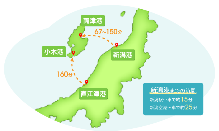 - 新潟港から両津港の発着地のみ