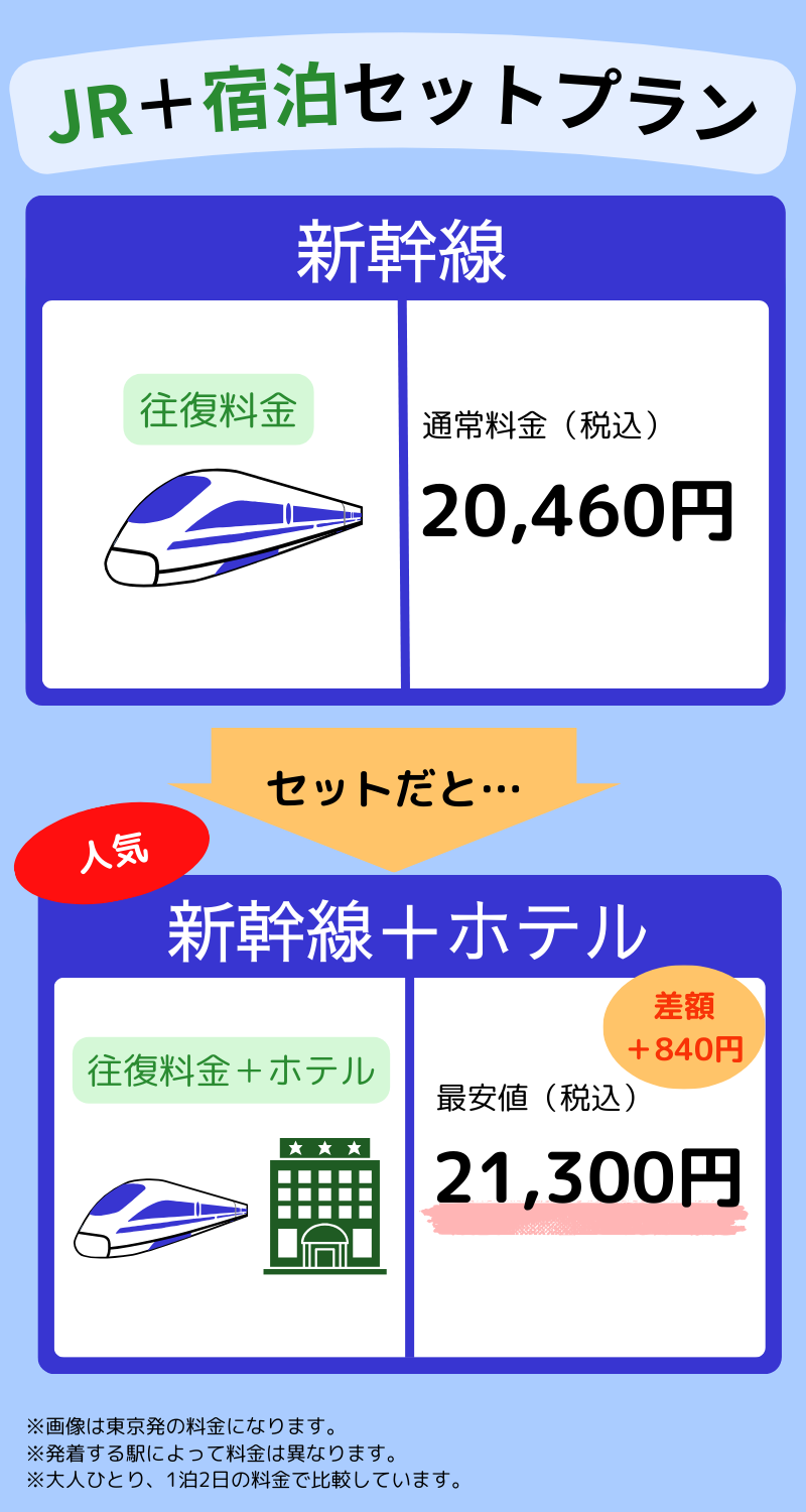 新幹線とホテルをまとめてお得に予約できるプランがあります。