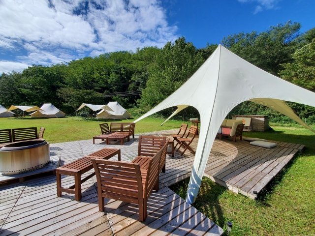 波音と星空に包まれながら、快適にアウトドア体験ができる上質なグランピング施設です。