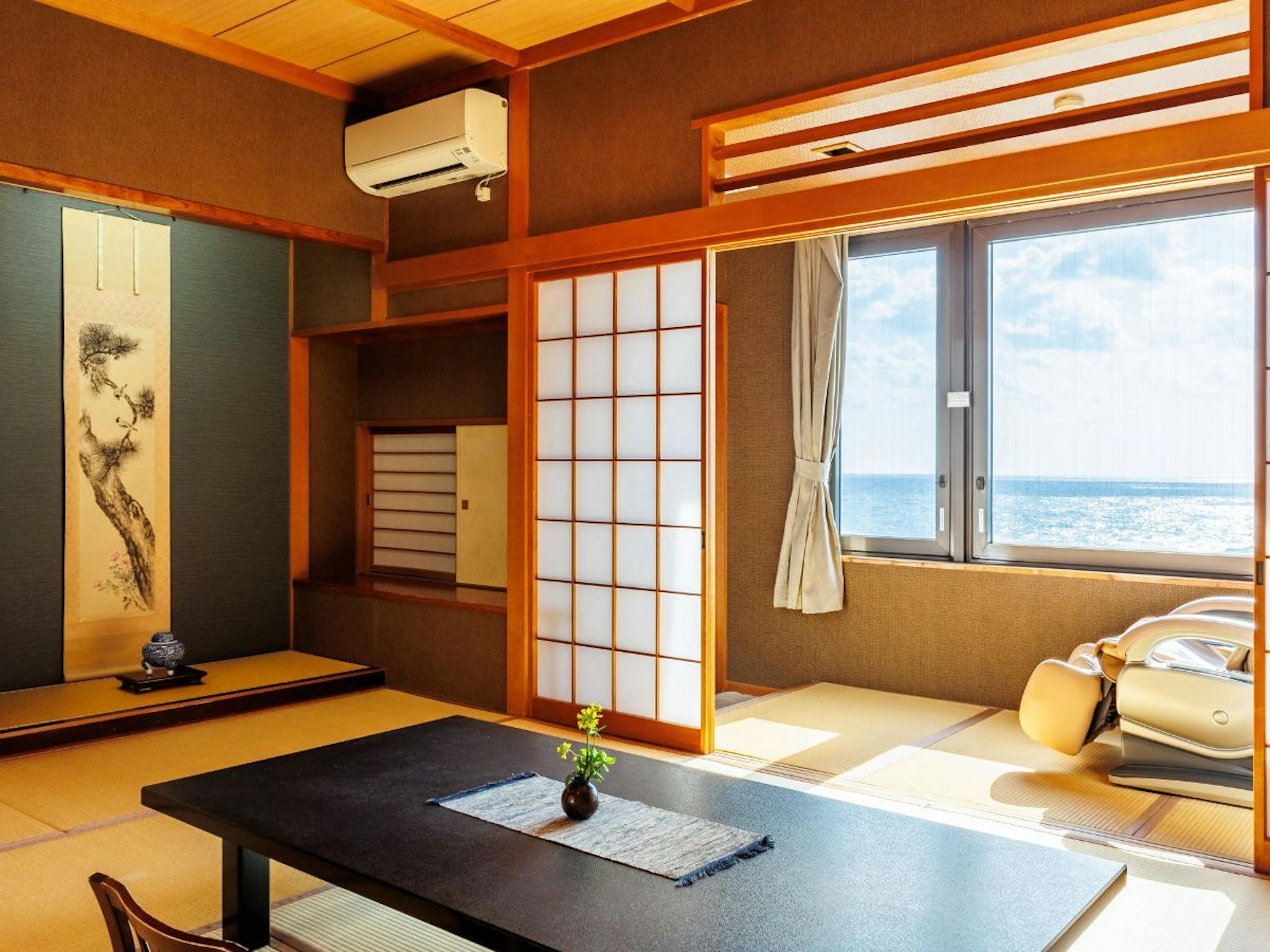 客室からは真野湾の美しい景色が楽しめ、早朝や夕暮れの時間帯も格別です。