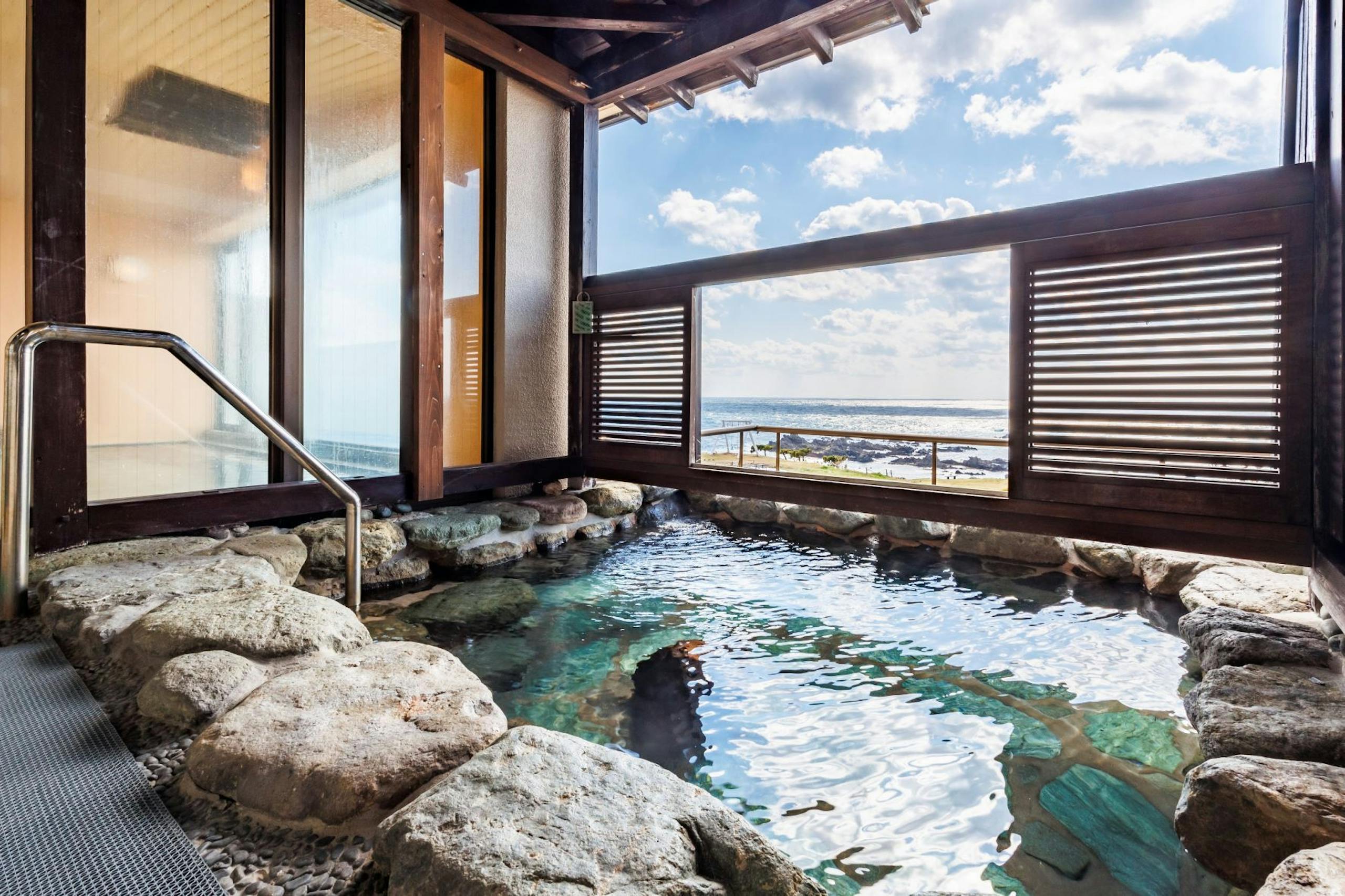 大浴場は島の「海洋深層水」を使用し、旅の疲れもふっと和らぐ癒やしの空間。